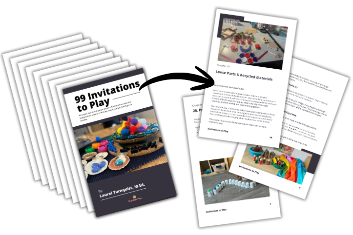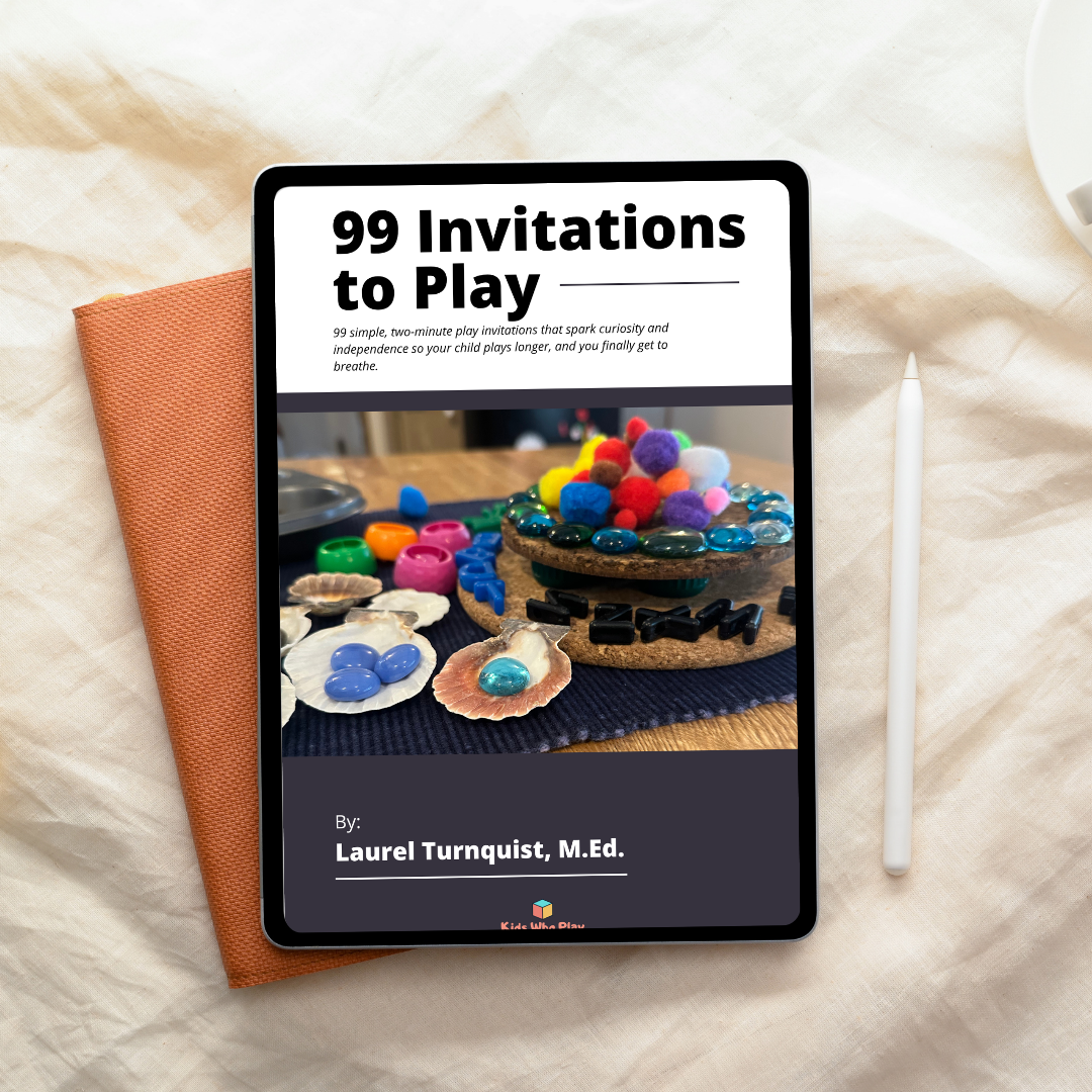 The 99 Invitations to Play ebook gives you 99 easy, open-ended play ideas that spark curiosity and help kids dive into play—no elaborate prep and no directing required.